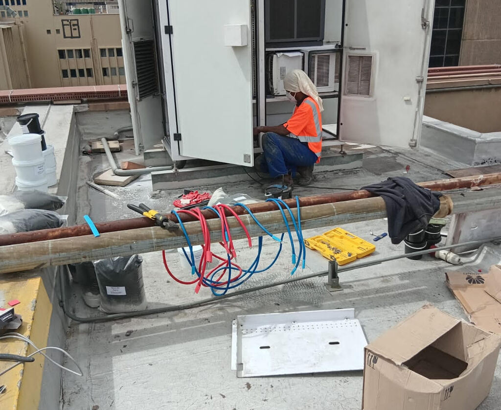Energy: Hybrid power systems – solar + battery + diesel backup (adapted for rooftop installation).